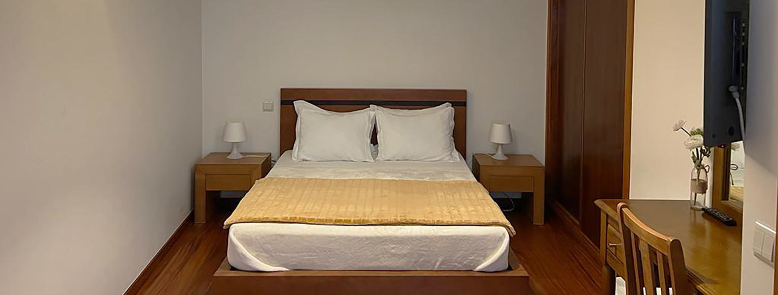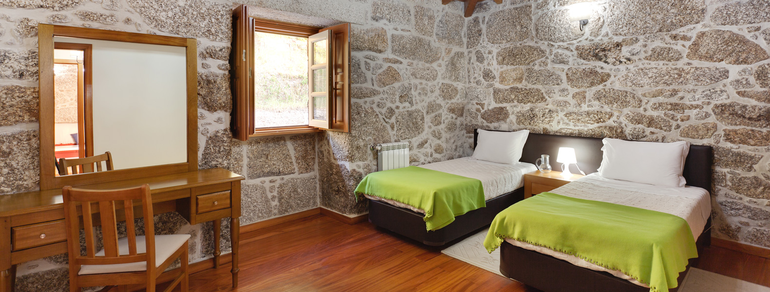 4 quartos duplos ao seu dispor, com cama de casal e casa de banho privativa.
